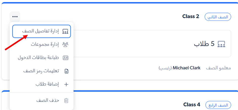 نضغط على الـ3 نقاط مقابل الصف المطلوب، ونختار ادارة تفاصيل الصف