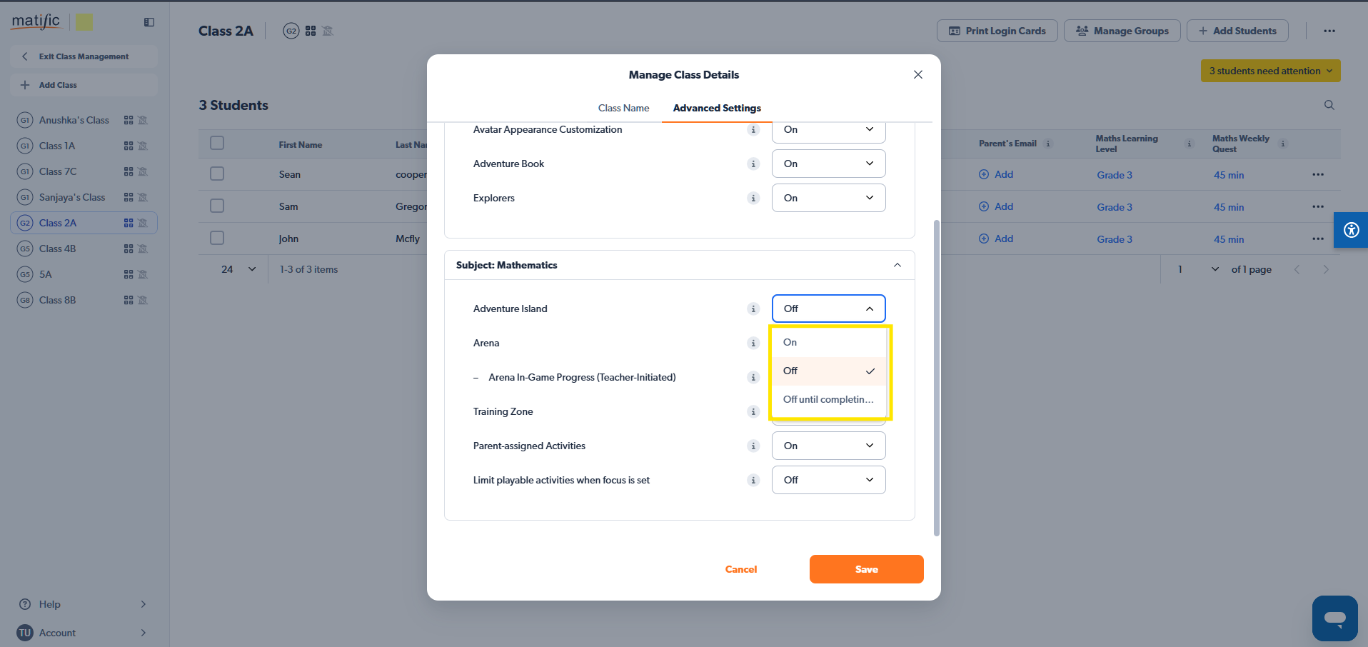 Teachers can lock specific areas within Matific until students complete their assigned work.