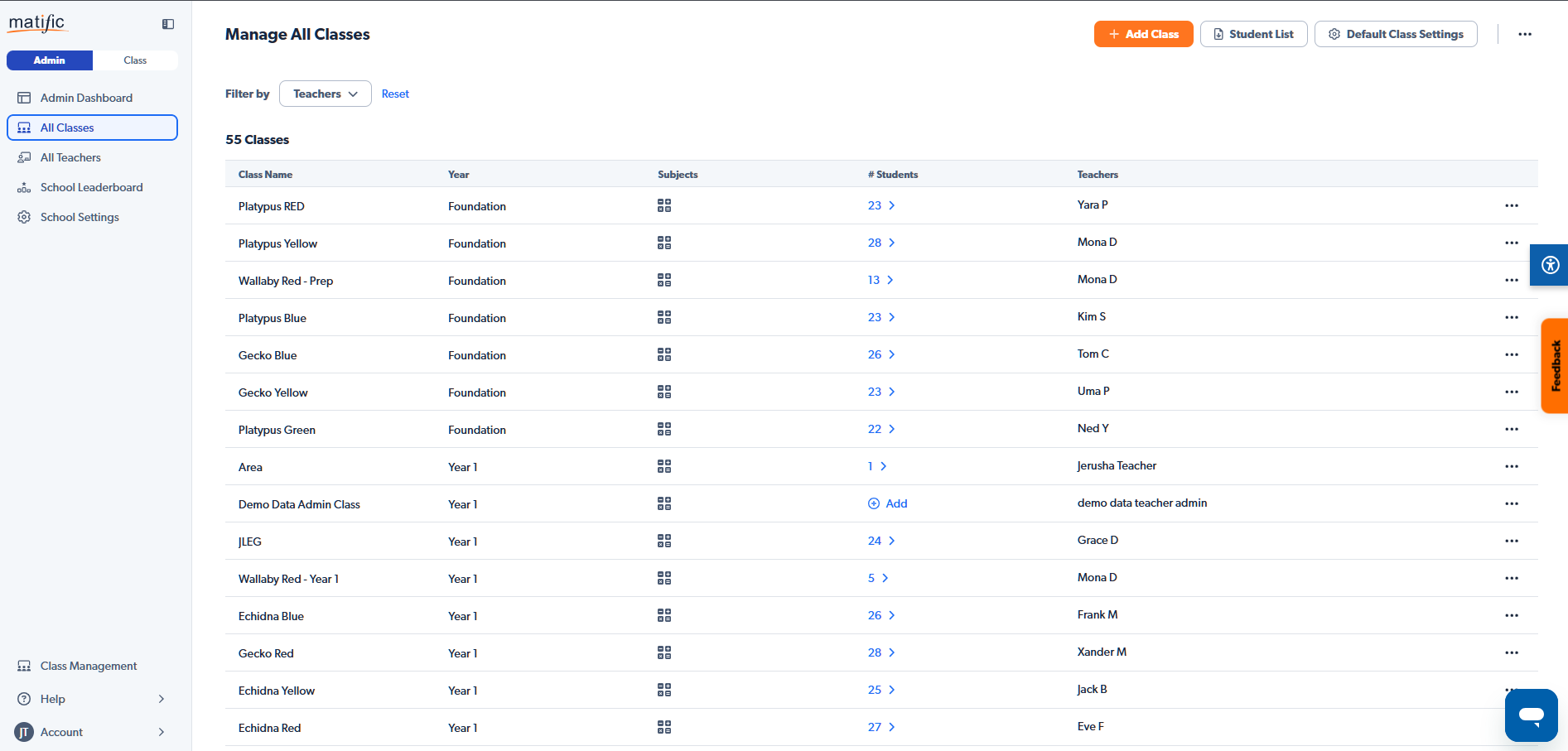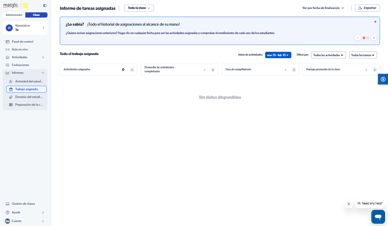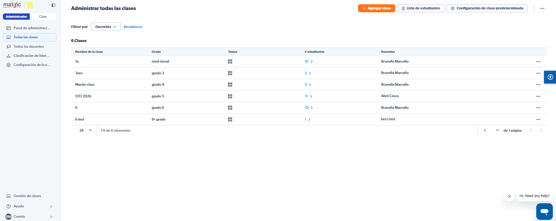 💡Si eres un administrador, utiliza el Cambiador de Administrador/Clases para moverte fácilmente entre las vistas a nivel escolar y a nivel de clase.