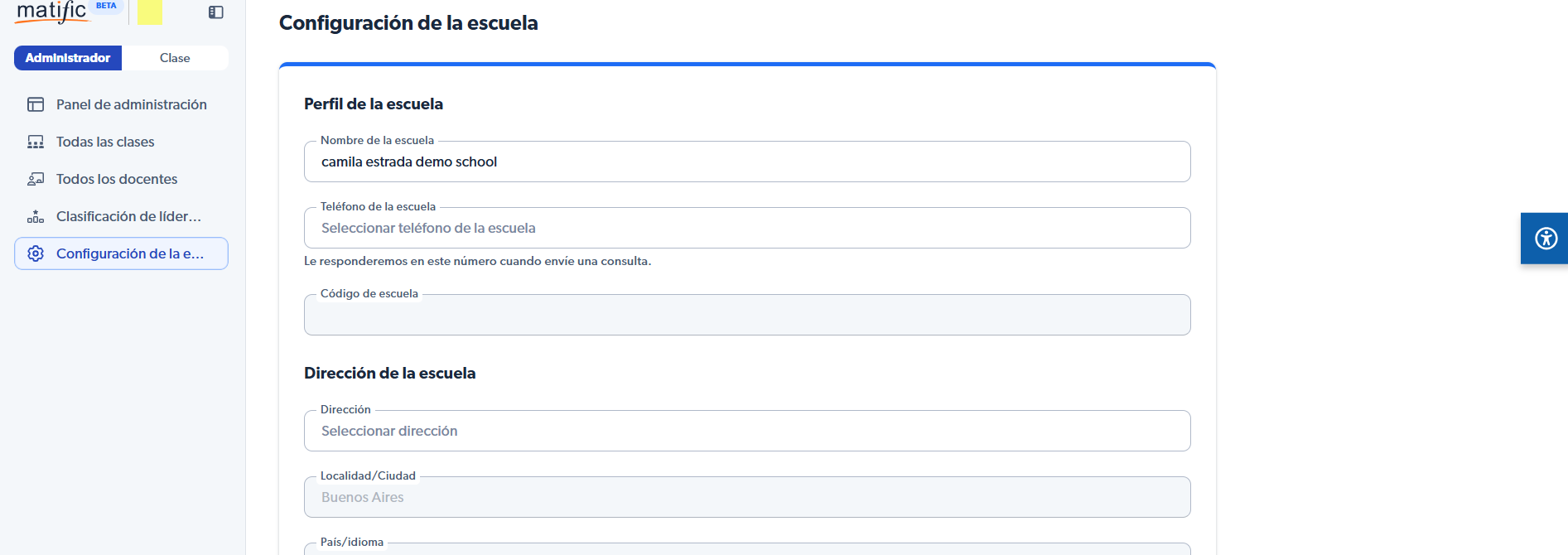 La sección de Configuraciones de la Escuela es donde los administradores gestionan: