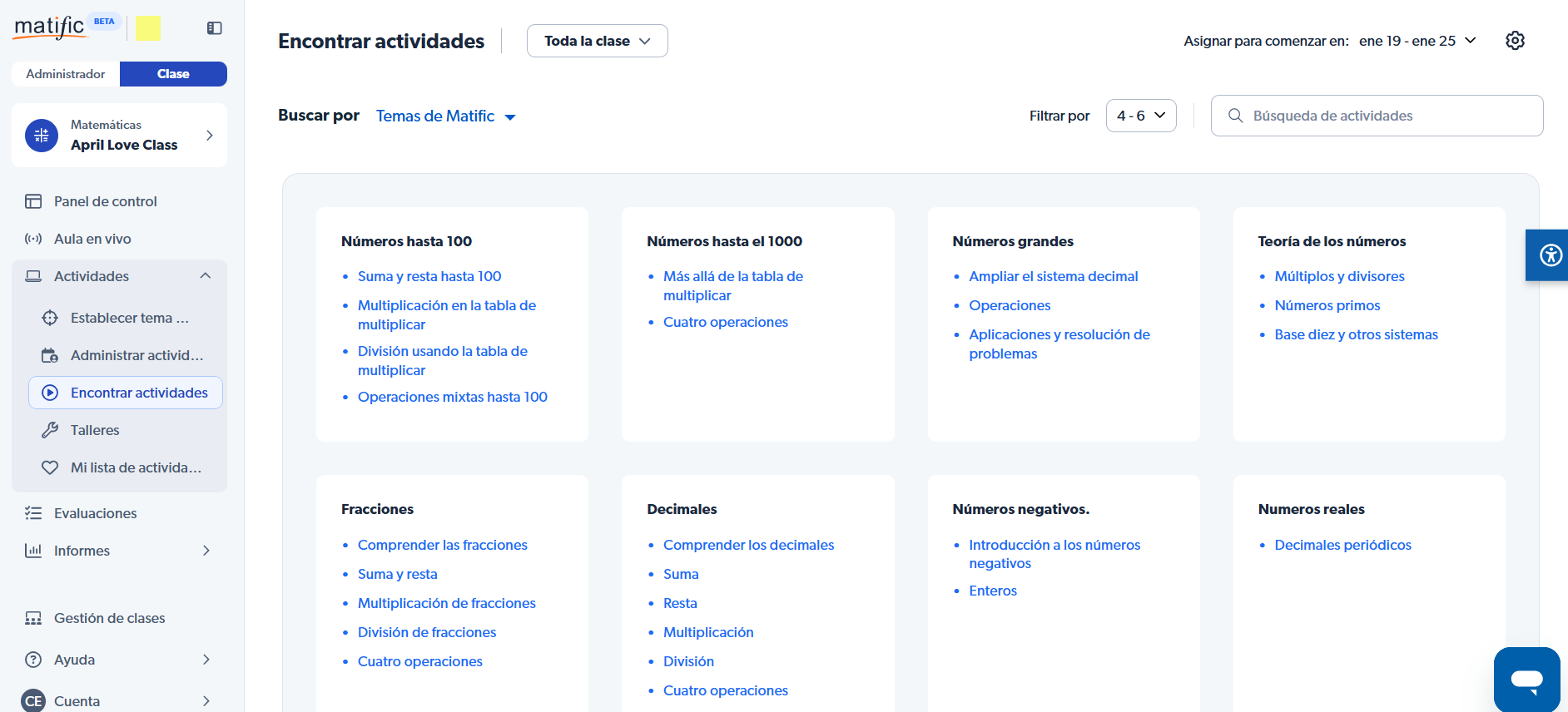 💡Si eres un administrador, usa el Cambiador de Administrador/Clases para moverte fácilmente entre las vistas a nivel escolar y a nivel de clase.