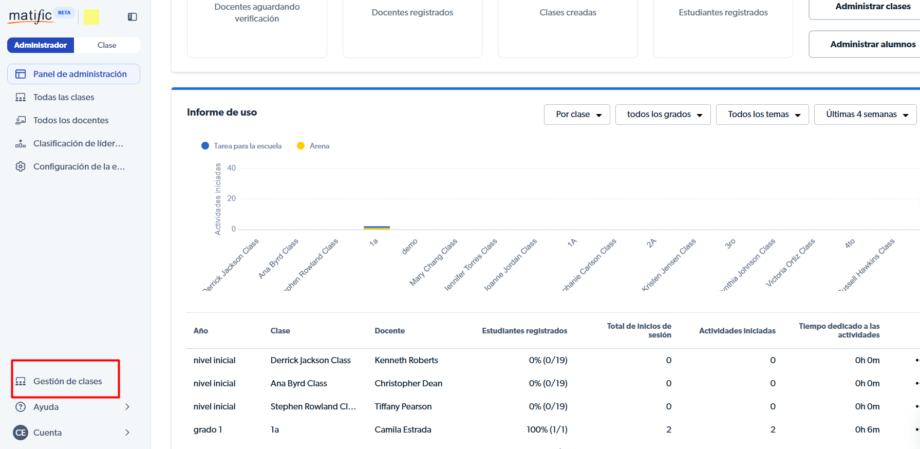 ❗Las páginas de Gestionar Mis Clases y Gestionar Mis Estudiantes ahora se han fusionado en Gestión de Clases.
