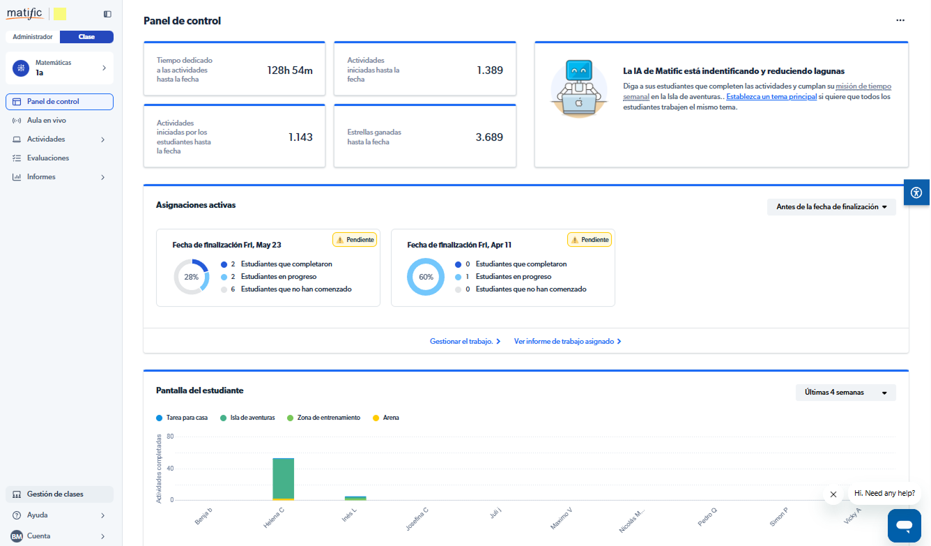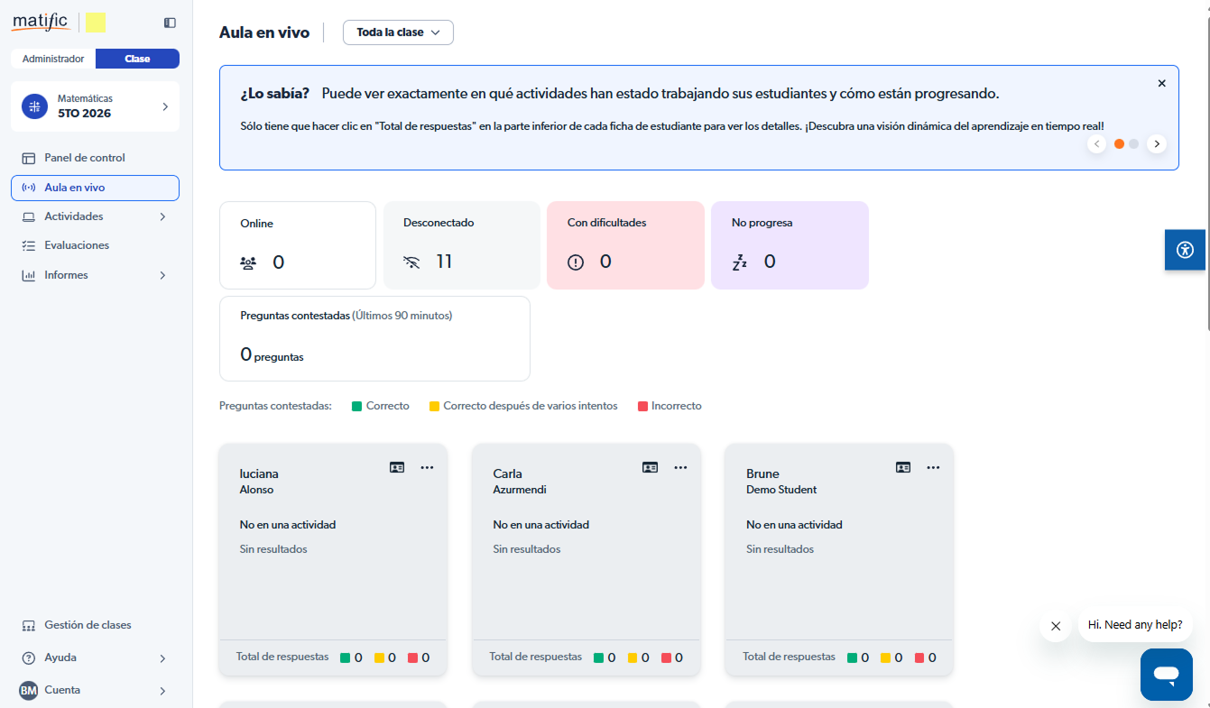 El Aula en Vivo te permite monitorear lo que tus estudiantes están haciendo en este momento.