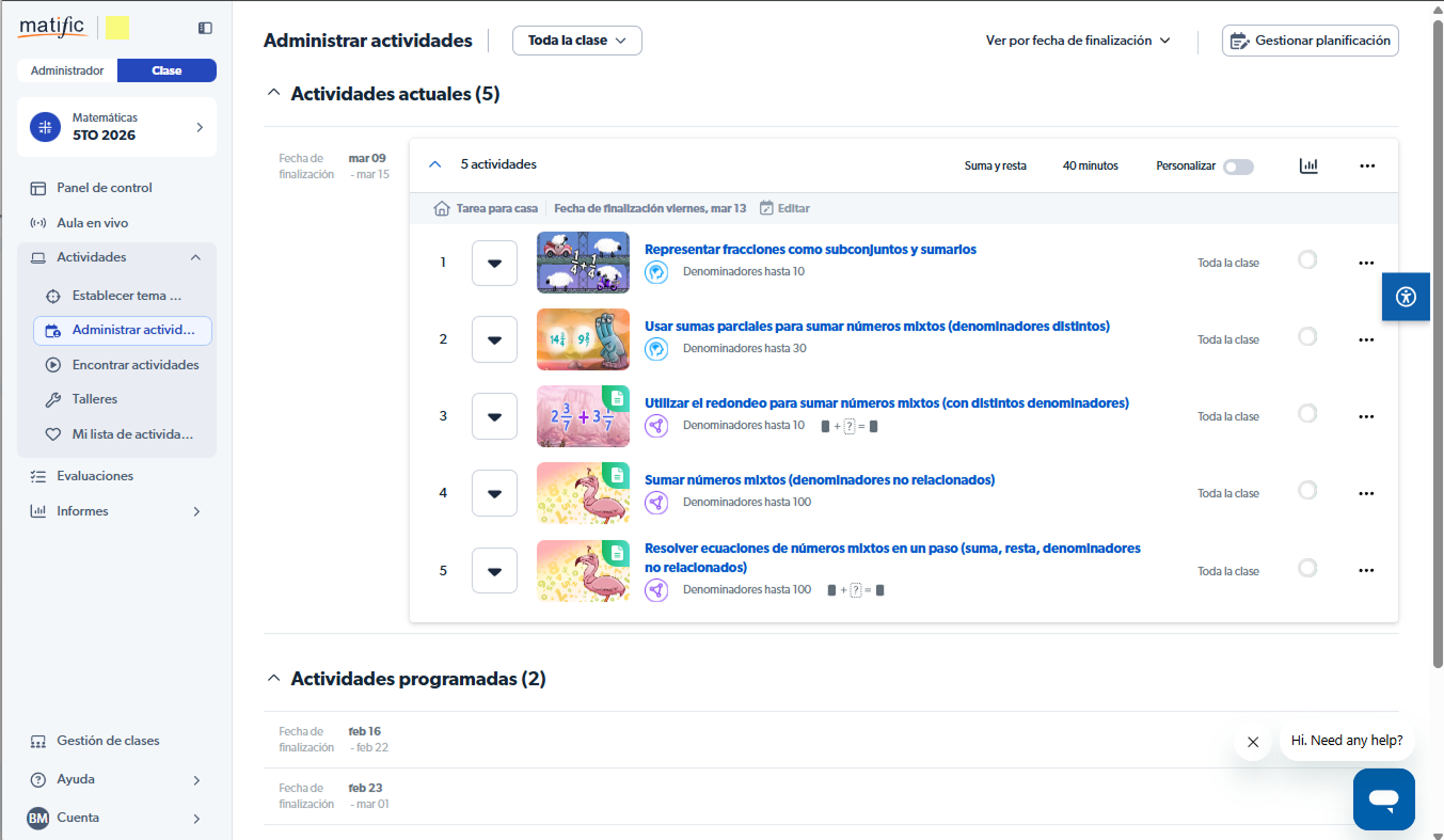 La sección de Actividades es donde planificas, asignas y gestionas el aprendizaje.
