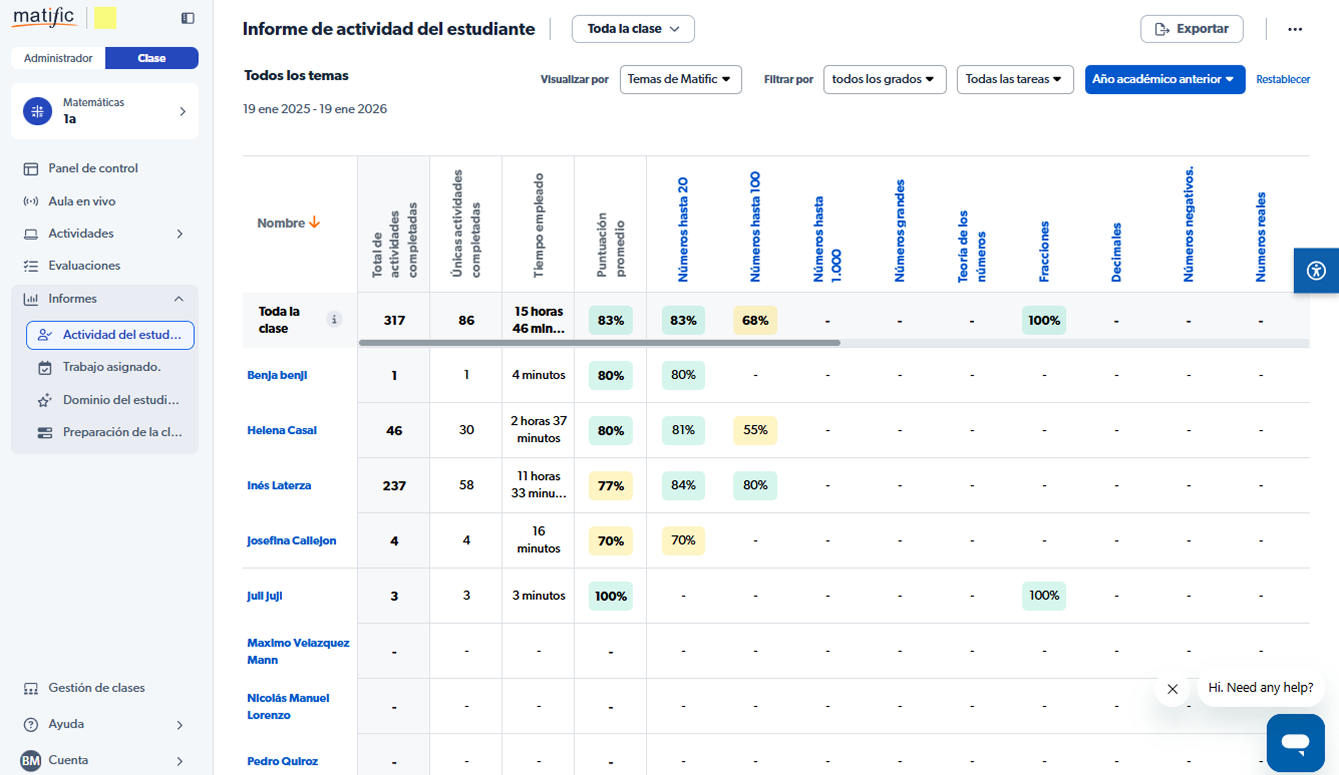 💡Este informe está disponible tanto para Matemáticas como para Literacidad Financiera y es especialmente útil para el seguimiento y la responsabilidad en el aula.