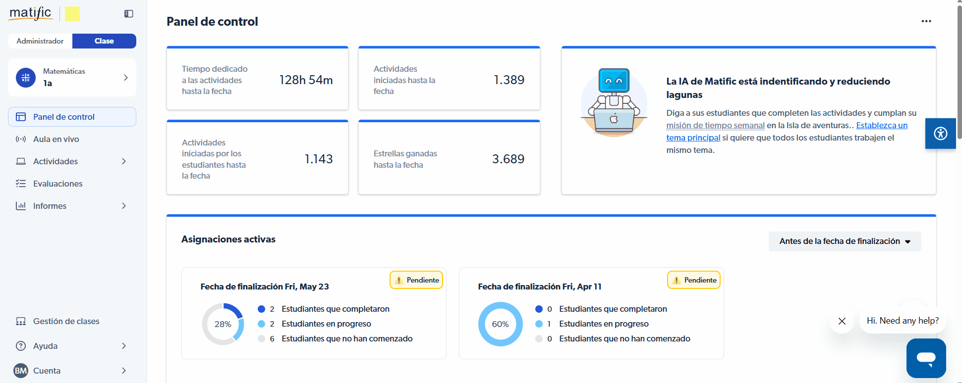 El Tablero te proporciona métricas en tiempo real de tu clase.
