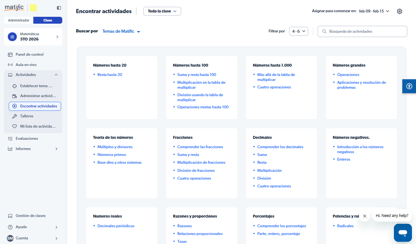 La sección de Ayuda proporciona orientación y apoyo mientras usas Matific.