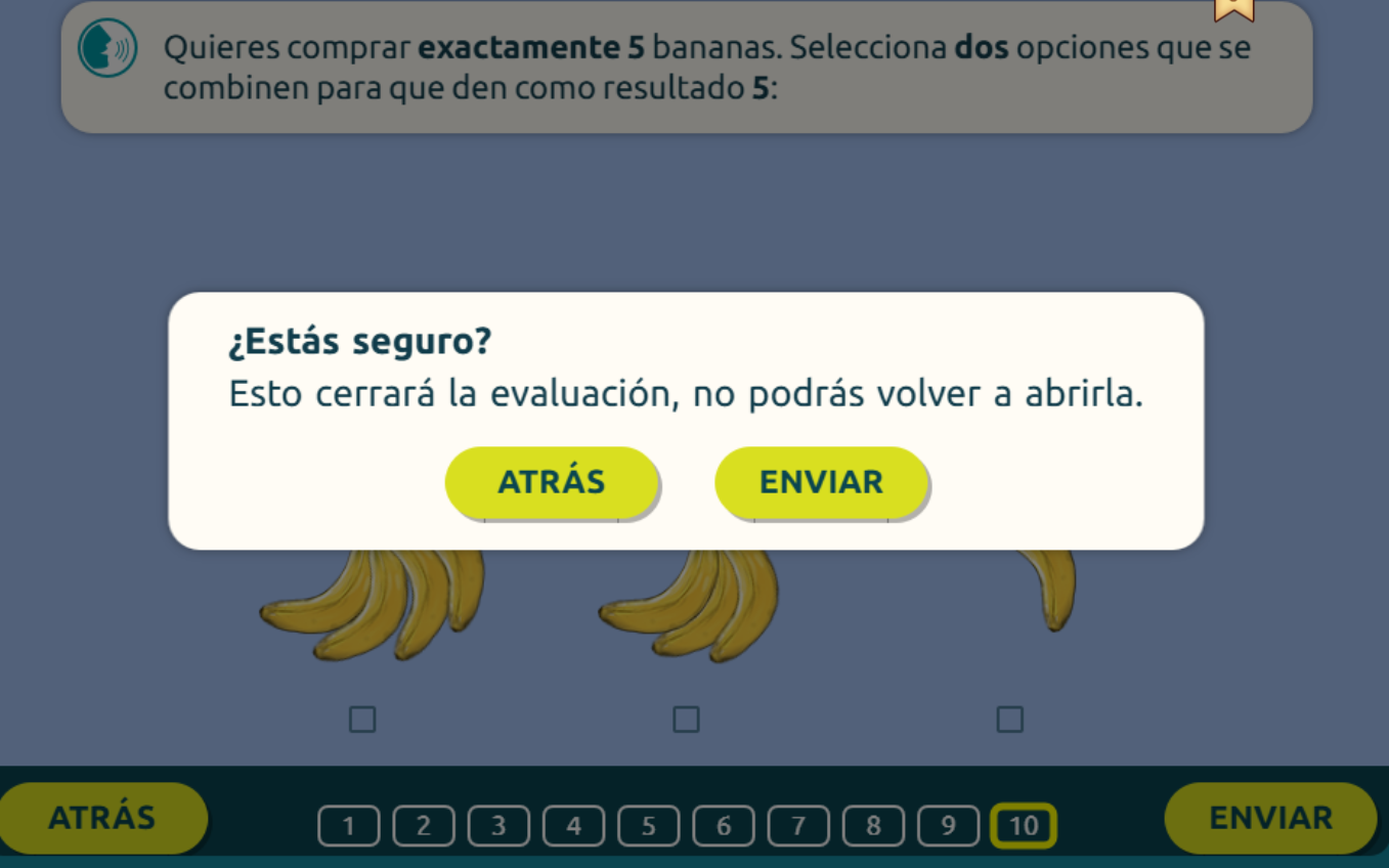 Antes de enviar, los estudiantes verán una pantalla de confirmación.