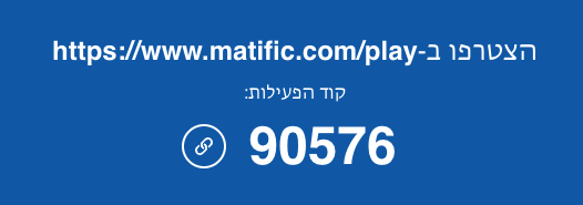 תוכלו ליצור משחק ראש בראש בלי שיהיה לכם מנוי למטיפיק ולהנות מתחרות ולמידה עם עד 60 משתתפים במשחק!