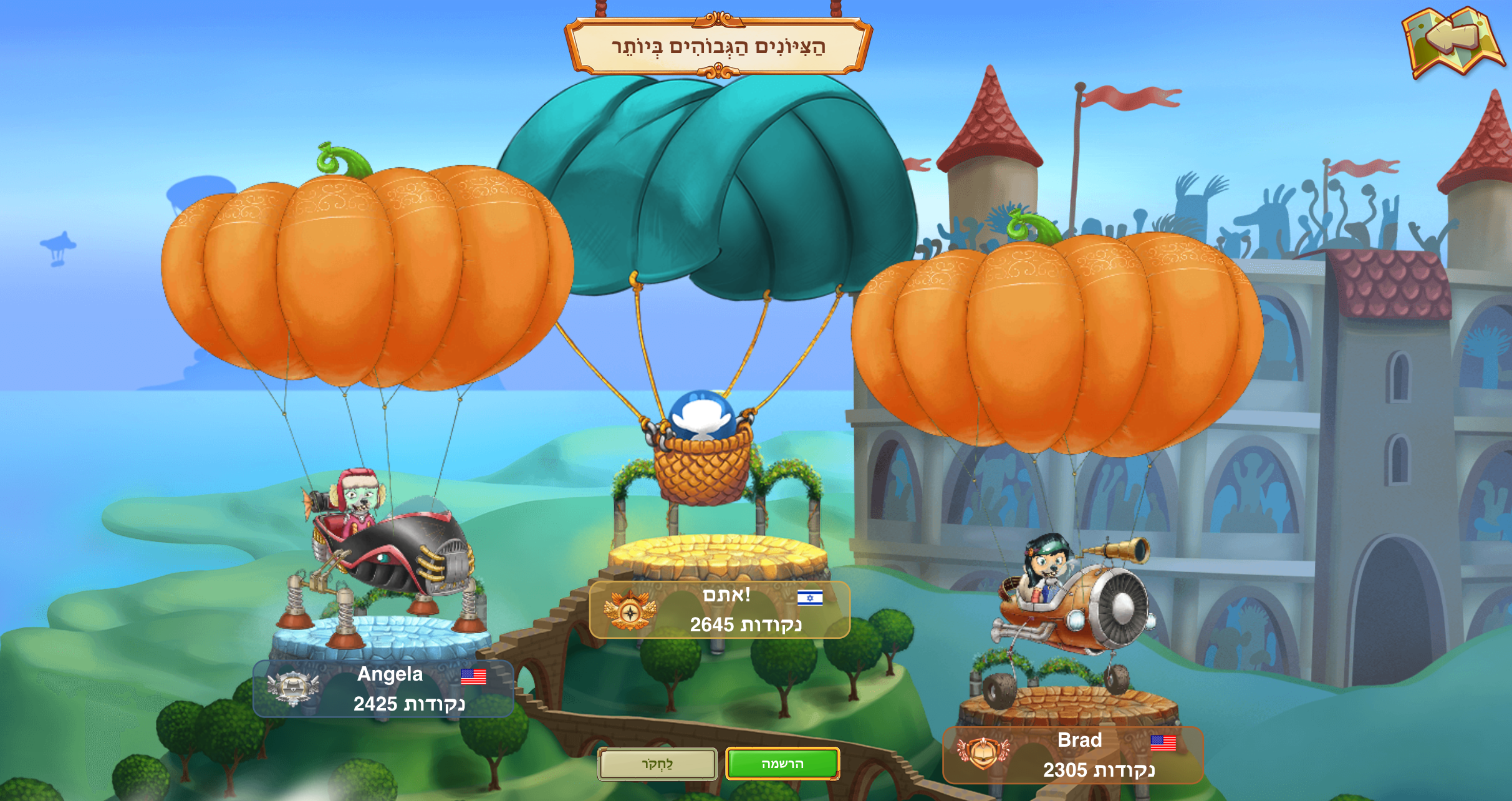 2. המשחק יהסתיים כאשר כל השחקנים יסיימו לפתור את התרגילים ולוח התוצאות יראה את התוצאה שלכם ושל שלושת המקומות הראשונים בתחרות.