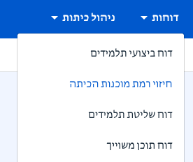 בלשונית דוחות > לחצי על חיזוי רמת מוכנות הכיתה.