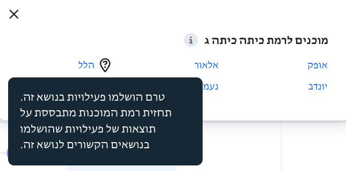 - אם אין סימון ליד שם התלמיד/ה, התחזית מבוססת על תוצאות הפעילויות שהושלמו בנושא עצמו.