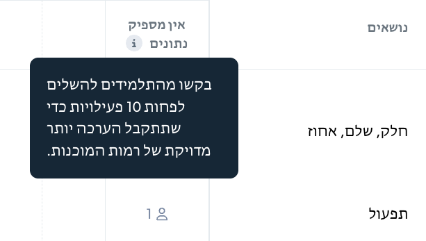 אם לא השלימו עדיין את הפעילויות, הם יופיעו בעמודת "אין מספיק נתונים".
