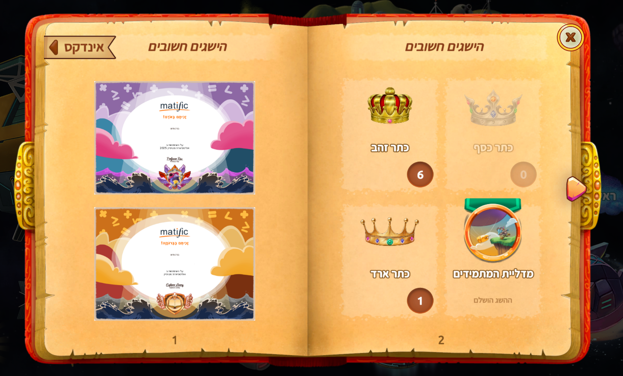 לחצו על ספר ההרפתקאות שליובחרו הישגים חשובים: