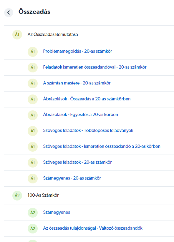 Bármelyik opciót is választjuk, a továbbiakban a megjelenő témakörök neveire kattintva juthatunk el az egyes feladatokig, vagy a jobb felső részen kulcsszó alapján tudunk feladatokat keresni: