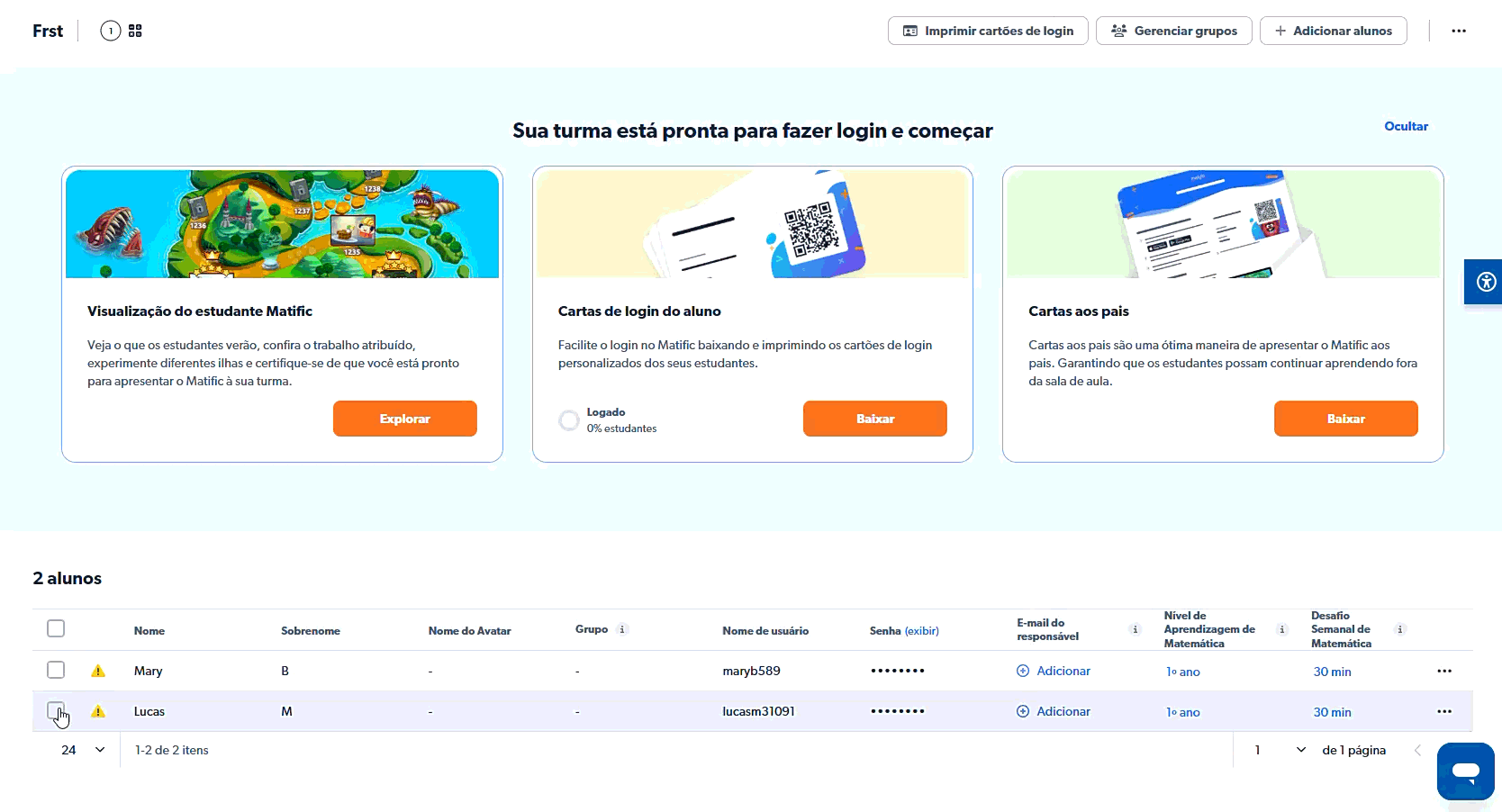 Apenas mude o nível de aprendizagem do seu aluno se você realmente acredita que as atividades sugeridas pela Matific estão muito difícil ou muito fácil na Ilha da Aventura. Se seus alunos estão jogando Matific regularmente, o nível de aprendizagem deles será otimizado automaticamente .