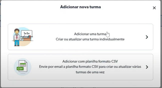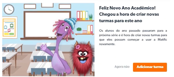 Você pode clicar em Adicionar Turma ou Agora Não.