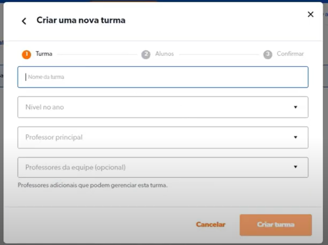 Se você clicar em Agora Não, você pode adicionar turmas posteriormente em Gerenciar Turmas > Gerenciar Todas as Turmas.