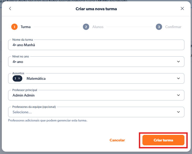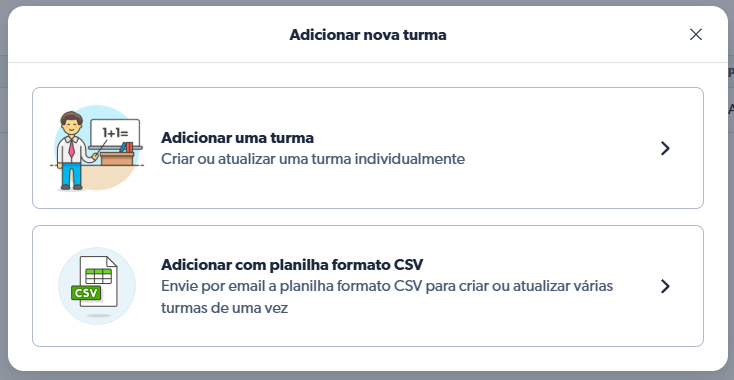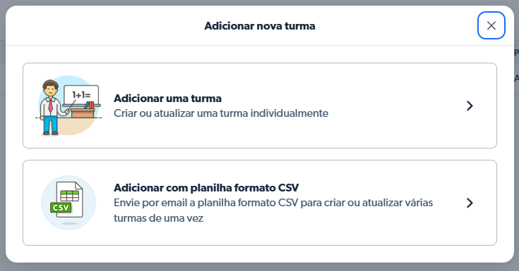 Quando um novo ano letivo começa, você poderá fazer a configuração de novas turmas.