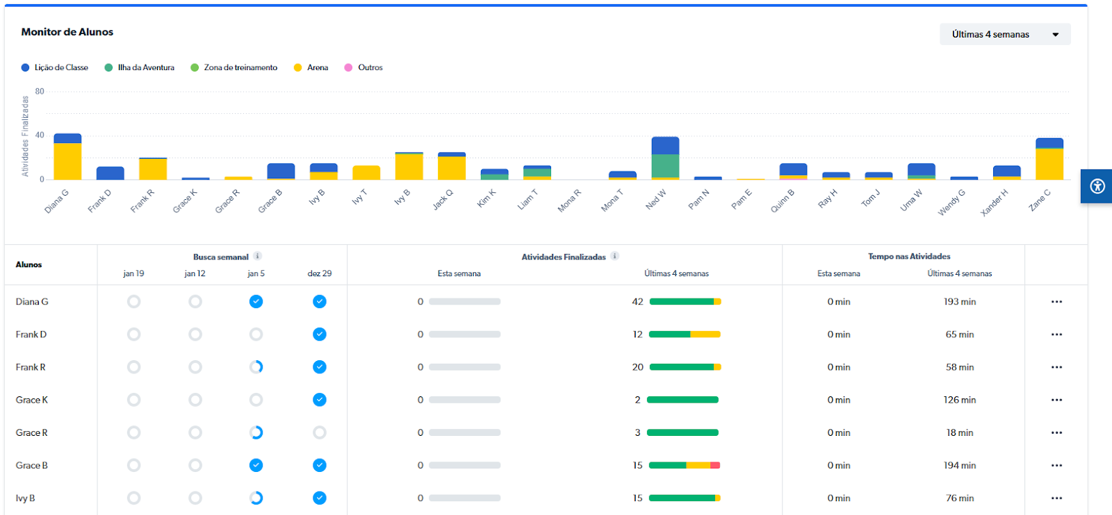- Acesse o Relatório de Atividade do Aluno para percepções mais aprofundadas