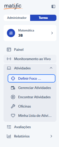 A aba Foco ajuda a orientar a aprendizagem quando você deseja que os alunos trabalhem em um tópico ou objetivo específico.