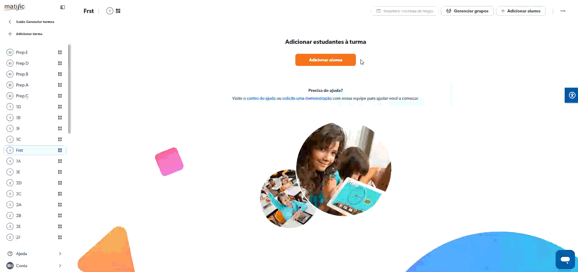 Adicionar sua primeira turma é o ponto de partida para uma aprendizagem personalizada, insights em tempo real e um gerenciamento de sala de aula mais eficiente no Matific. Depois que sua turma estiver configurada, você poderá adicionar alunos, acompanhar o progresso e começar a atribuir atividades imediatamente.