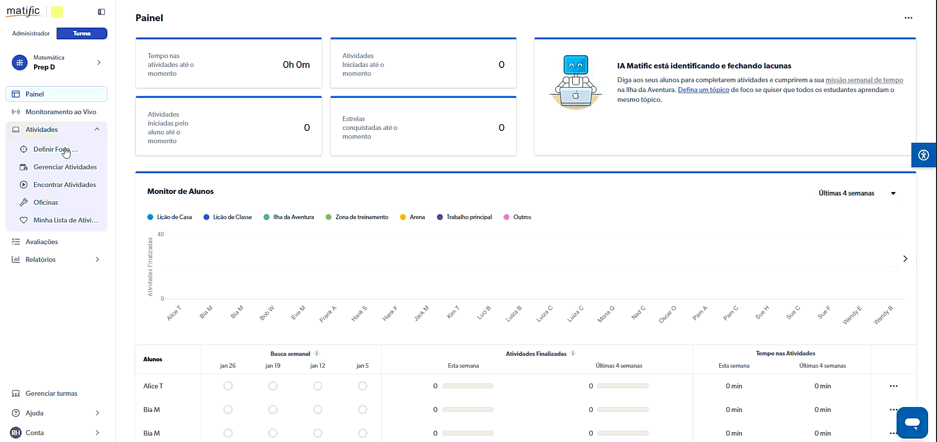 Você pode apresentar atividades tanto quando os alunos estiverem trabalhando individualmente quanto em grupo.