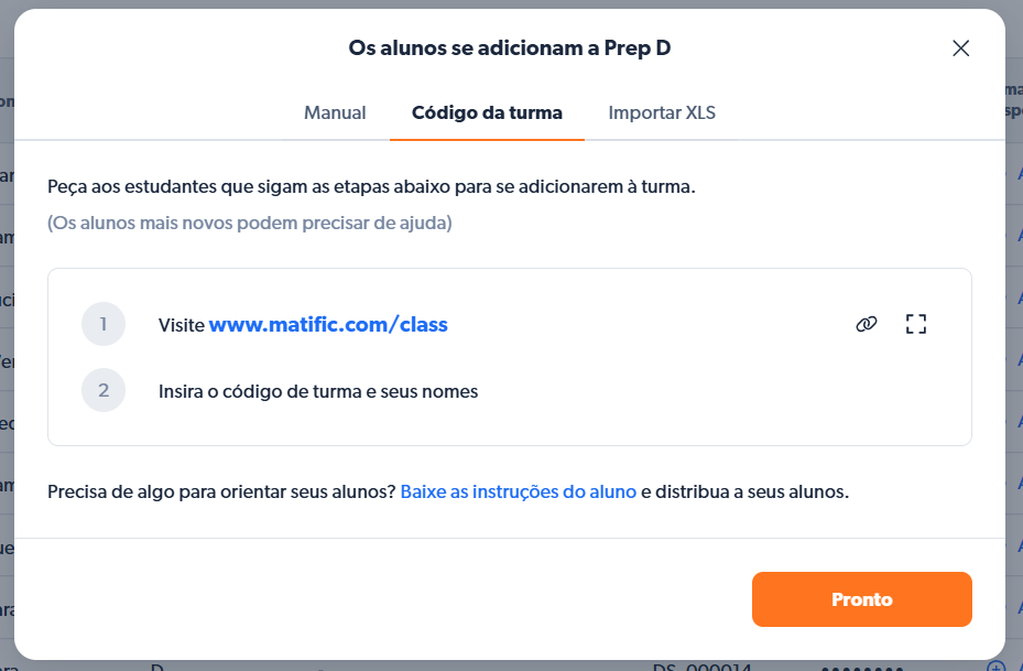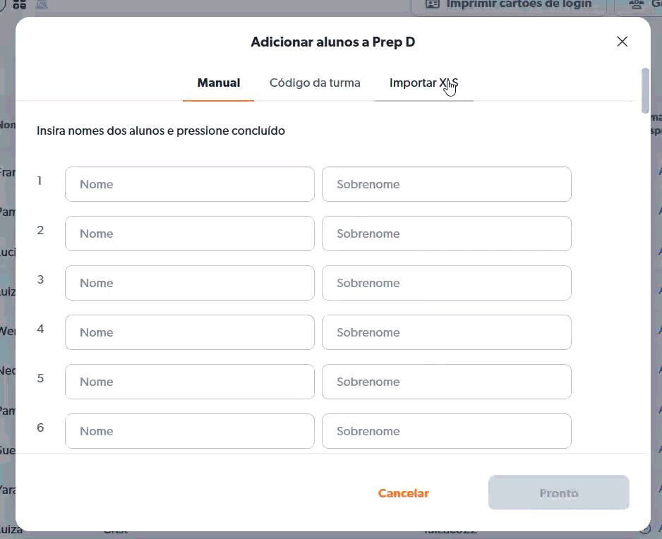 Digite o nome e o sobrenome de cada aluno e clique em “Pronto”.