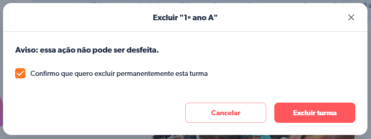 Antes de tentar excluir uma turma, certifique-se de que não há alunos na turma. A exclusão de uma turma não pode ser desfeita.