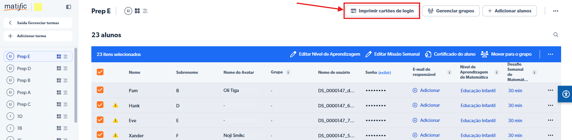 Para enviar o cartão de login ao responsável do aluno, o e-mail do responsável deve estar cadastrado na plataforma. Para cadastrar o e-mail do responsável, visite este artigo.