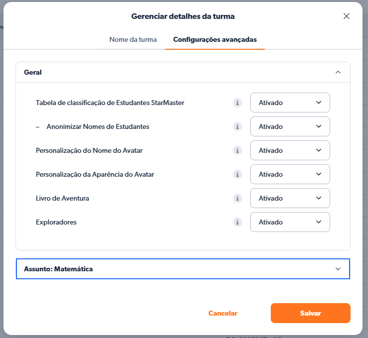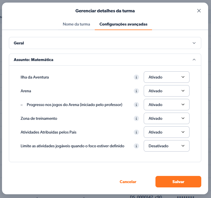 Clique nos três pontos ao lado da sua turma > Gerenciar Detalhes da Turma.