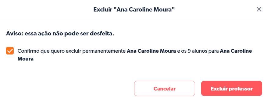 - Marque a caixa de confirmação > Clique em Excluir professor.