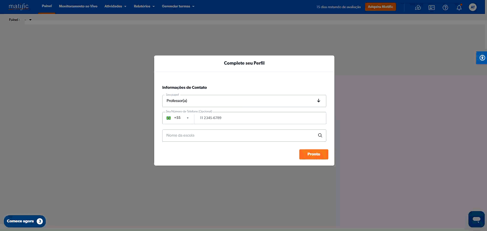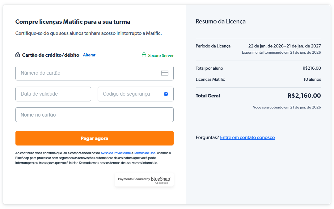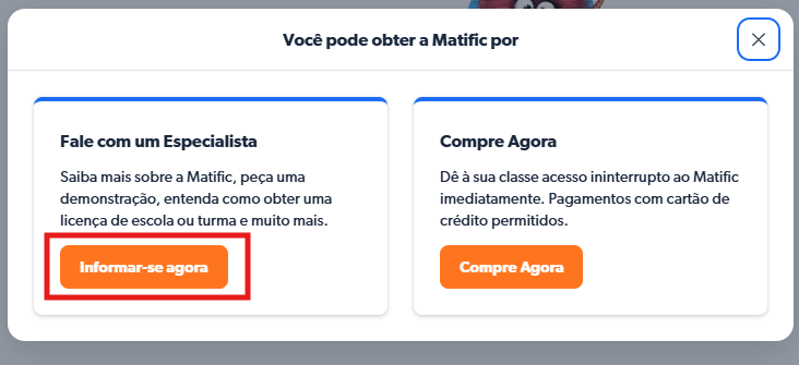 Depois disso, você pode enviar uma solicitação para a nossa equipe de vendas ou adquirir uma licença do Matific para a sua turma.