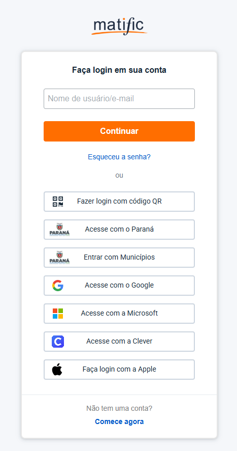 Visite Matific e acesse de acordo com o método em que você se cadastrou (e-mail ou Google).