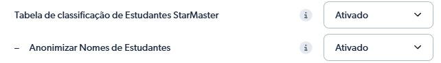 3. A configuração Anonimizar Nomes dos Estudantes só fica visível se a opção Tabela de classificação de Estudantes StarMaster estiver ativada.