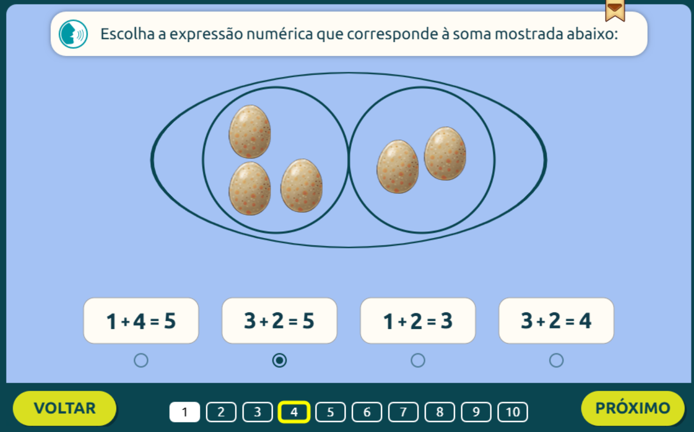 Os alunos podem navegar entre as perguntas para revisar ou alterar suas respostas.
