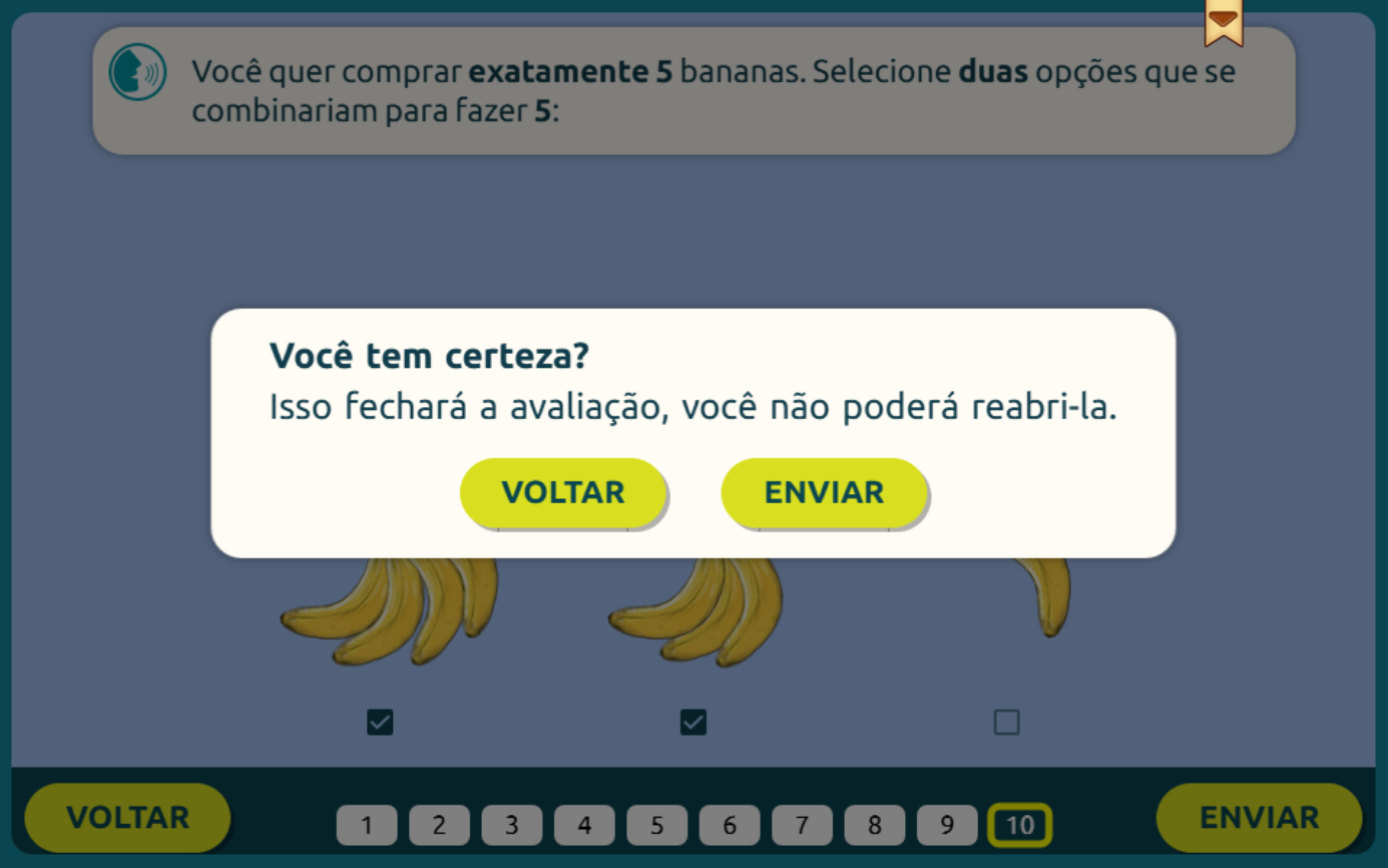 Antes de enviar, os alunos verão uma tela de confirmação.