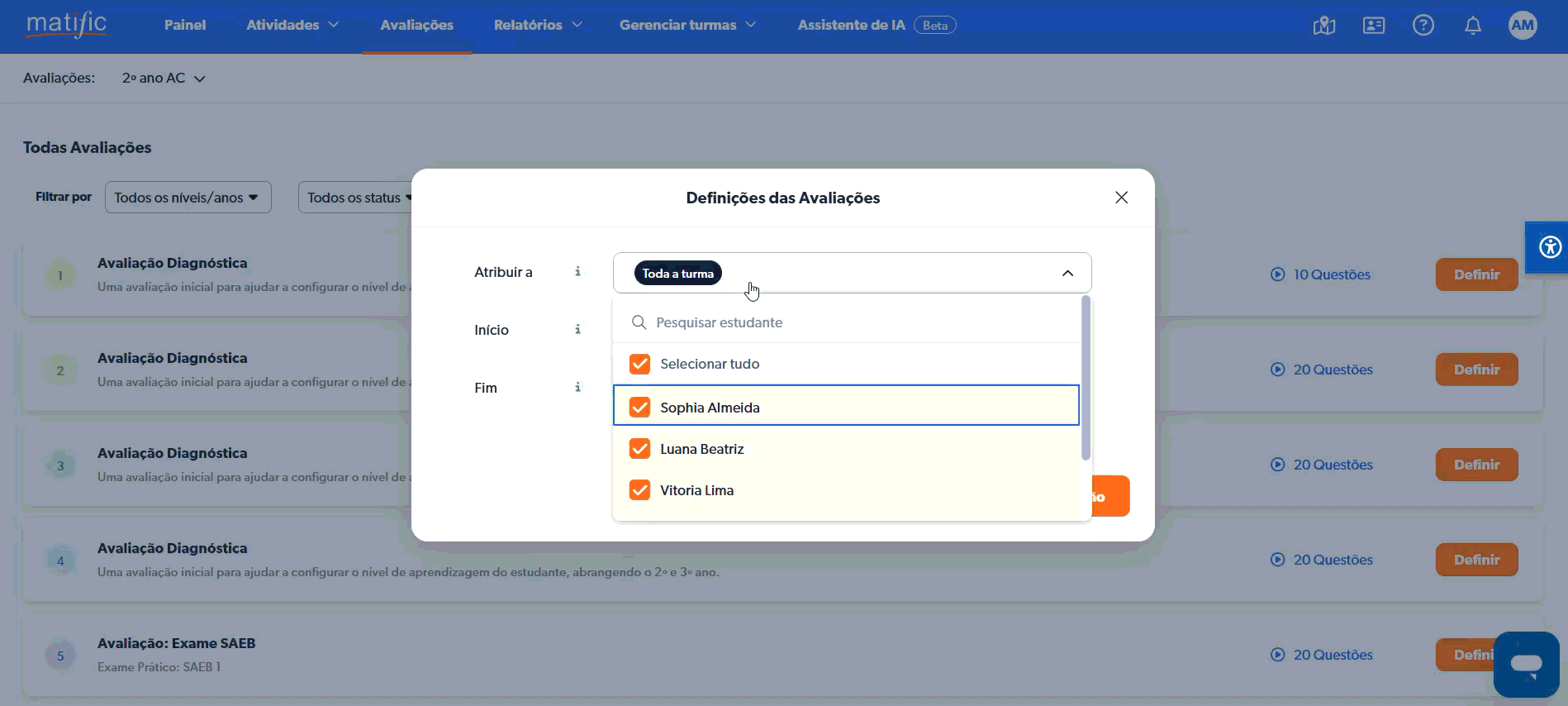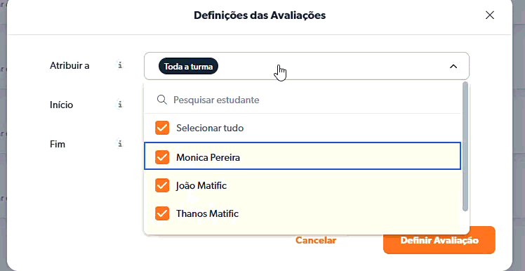 - Para quem você gostaria de atribuir (turma toda ou alunos específicos).
